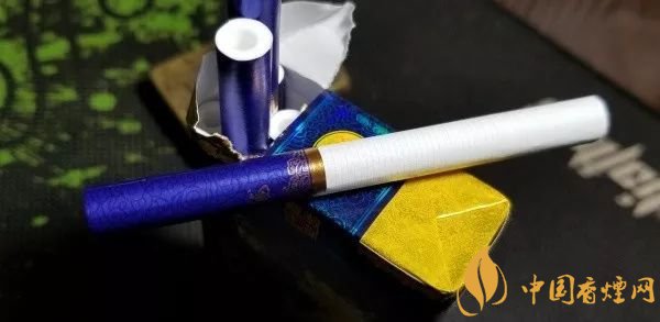 拉出,光面藍紫色的水松紙,帶有深色的云紋,與煙盒的顏色和紋飾相同。濾嘴底部,一圈粗粗的金色圓環(huán),其上,是金色的水波紋路。一面是真龍兩字,另一面是一方“南海龍王”的印章。整體,顯得典雅內(nèi)斂。