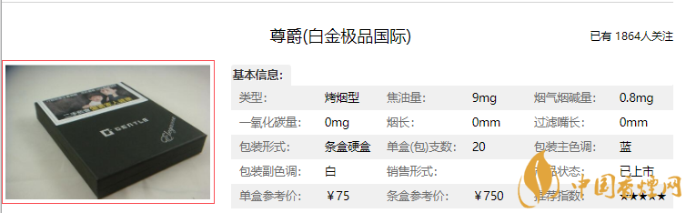 既然是頂級(jí)產(chǎn)品,自然價(jià)格也不會(huì)低,這款香煙的價(jià)格大概是75元/盒!