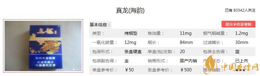 今天為大家介紹一款真龍海韻香煙,這款香煙被稱為“南海龍王”。之所以這樣叫,是因為這款香煙的包裝設(shè)計非常大氣,以龍的圖騰為主。那么這款南海龍王香煙多少錢一包?真龍海韻好抽嗎?下面為大家介紹一下真龍海韻的價格參數(shù)以及抽過的煙民對這款南海龍王香煙的評價。