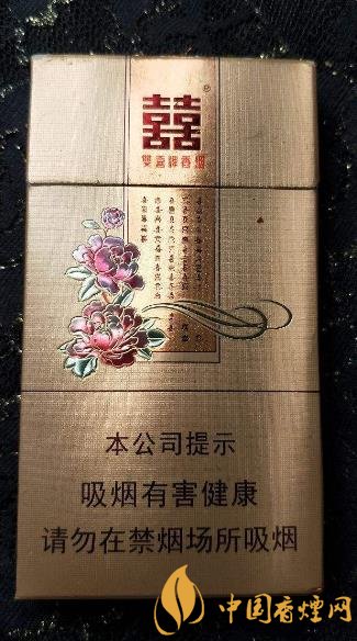 花悅的圖案設(shè)計(jì)很漂亮,金黃色為主色調(diào),包裝一改以往的素雅,變得十分華麗。正面中上部猶如一幅字畫一樣的設(shè)計(jì),而且底色的金還閃著亮晶晶的感覺,正上方是雙喜香煙的品牌名,下面是各種不同字體的“喜”字!旁邊是一團(tuán)花簇,而且花朵的邊緣有金色的勾勒。下面是警示標(biāo)語。
