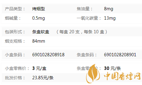| 煙長(zhǎng):84mm | 過(guò)濾嘴長(zhǎng):20mm | 包裝形式:條盒軟盒 | 單盒(包)支數(shù):20 |