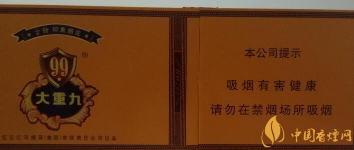 細支煙風頭正盛,大重九當然也不能孤芳自賞,總得還是要有奴嬌伴其左右,細支大九采用硬盒包裝,無雜質(zhì)的金礦黃襯托盾牌花邊“大重九”。背面是麥穗包裹“99”,簡單大氣的包裝卻不失豪華端莊。我們在對云煙大重九細支價格表圖的介紹之前,先來說說云煙細支大重九多少錢這款香煙的零售參考價為100元。