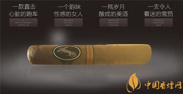 這款雪茄煙外包裝采用酷炫的黑色為主色,配以金色為輔色系,色系運用盡顯老練與成穩(wěn),又透露著說不出的高雅,茄體采用黑色的鋁管裝置,很有特點,茄體呈現(xiàn)為深棕色,每個茄體上都配有雙標(biāo)環(huán),顯得這款雪茄格外的高貴,特別的與眾不同,感覺上是專為成功人士和時尚精英量身打造的一款雪茄煙。