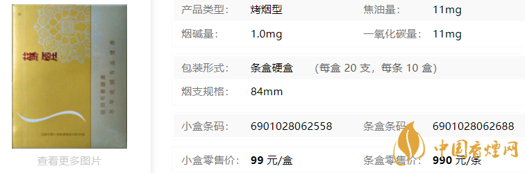 | 煙長(zhǎng):84mm | 過(guò)濾嘴長(zhǎng):25mm | 包裝形式:條盒硬盒 | 單盒(包)支數(shù):20 |