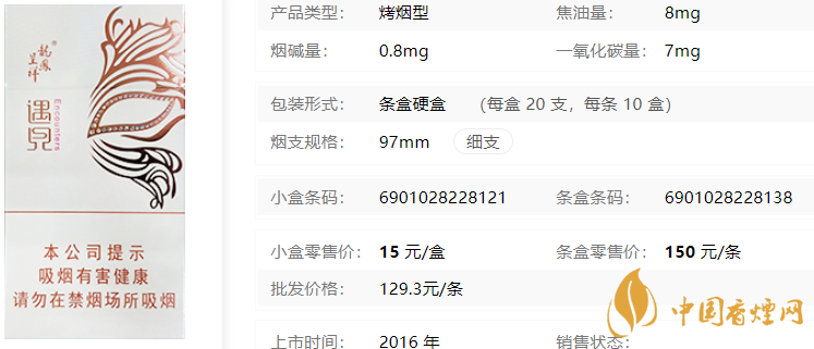 龍鳳呈祥遇見(jiàn)是一款花香型烤煙,采用獨(dú)特的調(diào)香技術(shù),配以精選國(guó)內(nèi)的優(yōu)質(zhì)煙葉,經(jīng)國(guó)內(nèi)頂級(jí)的調(diào)香師之手,研制出的一款茉莉花香型香煙,其口感清甜順潤(rùn),深受廣大女性消費(fèi)者的青睞,它低焦低害,產(chǎn)品定位本身是針對(duì)女性煙者而研發(fā)。據(jù)了解龍鳳呈祥遇見(jiàn)香煙價(jià)格市場(chǎng)上僅售15元/包。