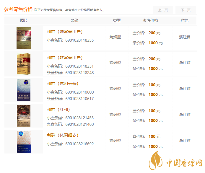 利群高端香煙價(jià)格表2021