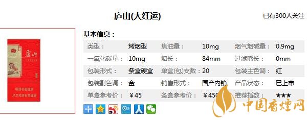 廬山大紅運煙參數(shù)信息