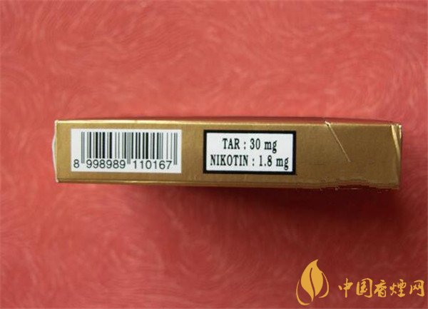 類型 :烤煙型 焦油量 :30mg 煙氣煙堿量 :1.8mg 一氧化碳量 :12mg