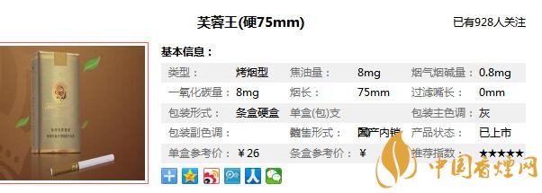 芙蓉王香煙于1994年誕生,參與中國高檔卷煙市場競爭,意在搶奪20元檔以上這一當(dāng)時的價位市場空白點(diǎn),然而芙蓉王香煙做的非常成功,它的風(fēng)格深受廣大卷煙消費(fèi)者喜愛,更因其內(nèi)在品質(zhì)被譽(yù)為“中式卷煙的典范代表”。在對新出短支黃芙蓉王售價進(jìn)行分析之前,先來看看這款芙蓉王短支多少錢一包,這款香煙叫做芙蓉王(硬75mm)售價為26元/包。