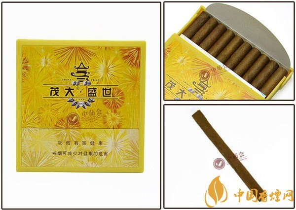 茂大盛世雪茄是迷你型小雪茄煙,也被稱為茂大盛世迷你雪茄。煙身飽滿,結(jié)構(gòu)精良,短小精悍的茄身便于撐控,也便于攜帶,口感醇和飄香,令人特別喜歡。在50元以內(nèi)茂大雪茄型香煙價(jià)格表圖中,它很有代表性。每每談起茂大雪茄型香煙有哪些好抽,就會(huì)很自然的想到它,它好抽,性價(jià)比還不錯(cuò),值得品鑒。