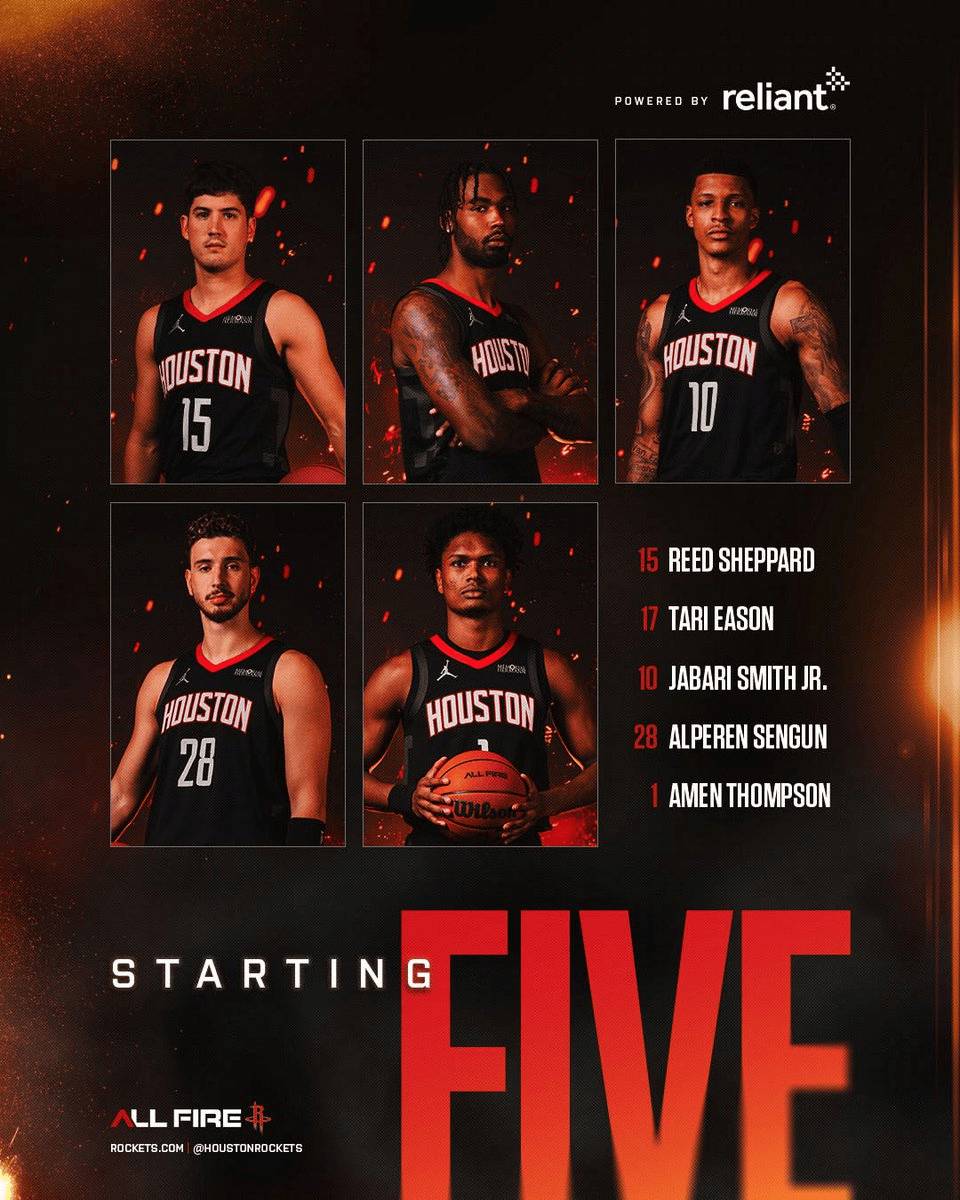 賽前,火箭官方社媒更新動態(tài),曬出了今日球隊首發(fā)陣容: