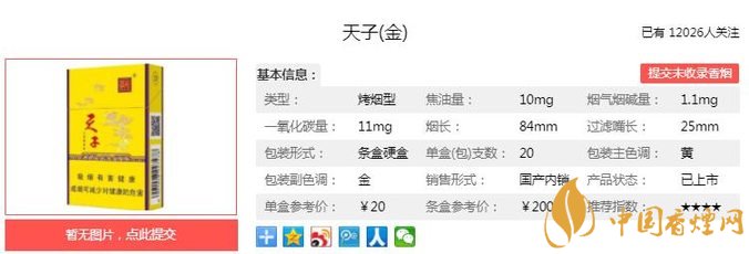 天子是重慶煙草工業(yè)有限責(zé)任公司的品牌,天子的品牌命名本身就具有極強(qiáng)的身份象征,這是天子品牌與生俱來的資源優(yōu)勢(shì),天子金主體色系選用經(jīng)典的明黃色,閃爍奪目光彩的同時(shí)更具有東方獨(dú)特的皇家魅力。下面就由香煙網(wǎng)小編帶大家一起來了解天子金的相關(guān)信息。