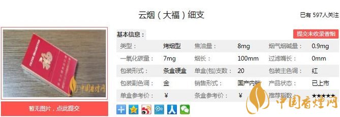 云系卷煙一直秉承自然天成的原料配伍的天然本香的調(diào)香風(fēng)格,主要來(lái)源于云南各地?zé)熑~產(chǎn)區(qū)優(yōu)質(zhì)煙葉原料的出產(chǎn)供給。煙支置于鼻下,沁人心脾的是淡淡的持久的烤煙自然香氣,帶有自然陳化綿長(zhǎng)的香氣。目前云煙大福細(xì)支售價(jià)未知。