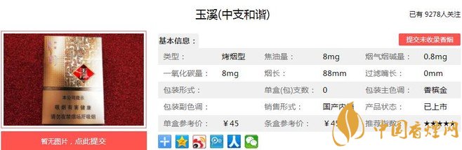 玉溪中支和諧是紅塔集團高端突破的重點規(guī)格新品,產(chǎn)品傳承中國傳統(tǒng)文化理念,兼具中支和爆珠兩種創(chuàng)新品類特質(zhì),使枇杷爆珠的果香與煙草本香相得益彰,吸味清香、甜潤舒暢、平衡舒適。經(jīng)香煙網(wǎng)小編市場調(diào)查玉溪中支和諧售價為45元/包。