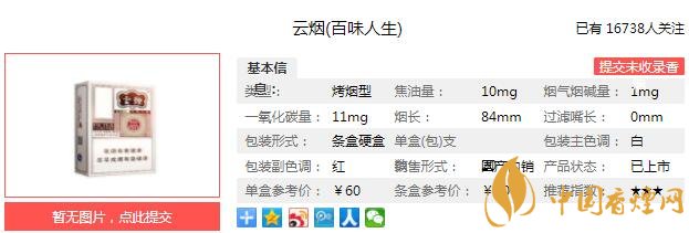 云煙百味人生優(yōu)選世界香料,取典型天然香韻,提取爆珠,賦予獨(dú)特香味風(fēng)格吸味,與本香完美融合。選擇捏爆爆珠,感受爆珠香氣與煙草本香完美融合帶來的獨(dú)特的風(fēng)格吸味,煙味醇厚,豐富甜潤(rùn),領(lǐng)尚五味。經(jīng)香煙網(wǎng)小編市場(chǎng)調(diào)查云煙百味人生售價(jià)為60元/包。