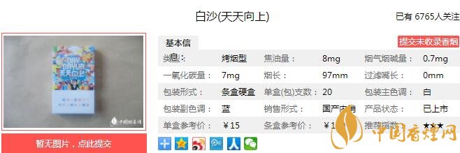 白沙(天天向上)名字很勵志,符合年輕人的消費(fèi)特點(diǎn),比較受青年消費(fèi)者的推崇,包裝很漂亮很新潮,讓人看了有一種積極向上的感覺,在市場上賣得不錯。下面就由香煙網(wǎng)小編帶大家一起來了解白沙天天向上的相關(guān)信息。