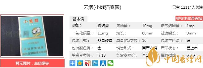 小熊貓家園采用來自云南會澤、文山的烤煙葉、阿拉伯的水煙葉以及津巴布韋的雪茄煙葉復配而成,小熊貓家園也正是在這樣優(yōu)質復配煙絲的基礎上散發(fā)出煙草獨特的煙草自然本香。經香煙網(wǎng)小編市場調查云煙小熊貓家園售價為18元/包。