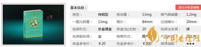 | 煙長:84mm | 過濾嘴長:20mm | 包裝形式:條盒硬盒 | 單盒(包)支數(shù):20 |