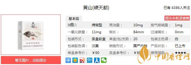 黃山硬天都加有獨(dú)具一格的石斛香珠,以其淡雅中藥之香,別于全開寬版式天都。難得的,是中藥之香與傳統(tǒng)的焦甜之香融和到位,充分協(xié)調(diào),不僅讓“黃山”品牌在文化上實(shí)現(xiàn)升級突破,而且給消費(fèi)者帶來全新體驗(yàn),成為“黃山天都的特色之一。經(jīng)香煙網(wǎng)小編市場調(diào)查黃山硬天都售價(jià)為90元/包。