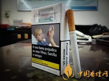 正面的包裝設(shè)計(jì),也是目前歐盟版本的標(biāo)準(zhǔn)式樣。翻蓋上的文字為葡語(yǔ),內(nèi)容自然是關(guān)于吸煙有害健康了。