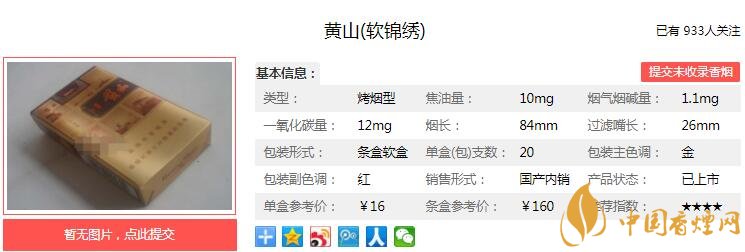 以上便是由香煙網(wǎng)小編為大家介紹的關(guān)于黃山軟錦繡好抽嗎 黃山軟錦繡價(jià)格及口感分析的相關(guān)信息,想要了解更多有關(guān)內(nèi)容請點(diǎn)擊:白沙和天下有幾款 5種和天下香煙口感分析