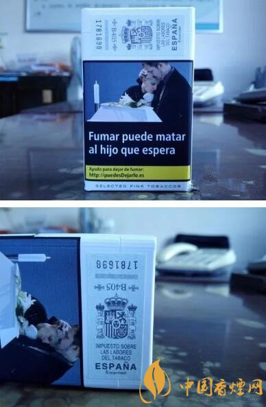 煙盒背面頂端貼制有西班牙的完稅標(biāo)簽。
