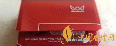 老版的Logo區(qū)以銀色勾框,Logo區(qū)頂部一部分在上蓋位置。由于煙盒卷折問題,這個Logo外框會有一定的錯位。在Logo區(qū)下,有一條細(xì)細(xì)的銀色條帶,里面用白色印制有AMERICAN BLEND字樣。煙盒中部偏右,則有白色印制的RED字樣,顯示這款煙的煙款為紅標(biāo)。