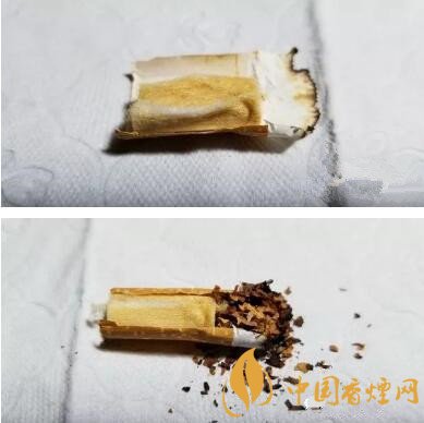 剖開濾嘴,絲束整段顏色偏黃,撕開絲束,內(nèi)部顏色均勻,煙氣的流速一直算比較恒定可控。煙氣的風(fēng)味恒定也來(lái)源于此。