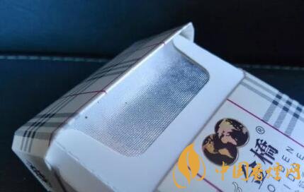 煙盒的高度是97mm。正反兩面的圖案設(shè)計(jì)相同,都是有如床單或者臺布樣式的畫面。九宮格樣式的中間,印制有金橋品牌香煙的LOGO,以及英倫奶香的名稱。從警示語句內(nèi)容來看,是大字版本初期款,2016年10月改版前的款式。