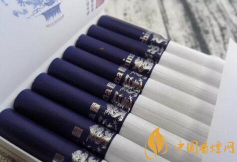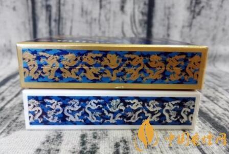 之所以此款china瓷為9+1系列,是指一條10盒香煙中,有一盒的包裝設(shè)計及口味,與余下九盒有所區(qū)別。圖片中深藍色澤包裝的,名為“龍王”。此種命名,乃是因十盒圖案皆為騰云祥龍而來。