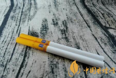撕掉錫紙,露出的煙支過濾嘴同樣是杏黃色調(diào),相比于細(xì)支規(guī)格的要重一些。兩排清晰的降焦線,印制于過濾嘴的中間部位。