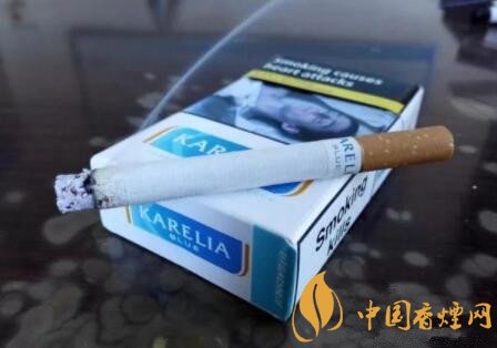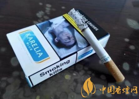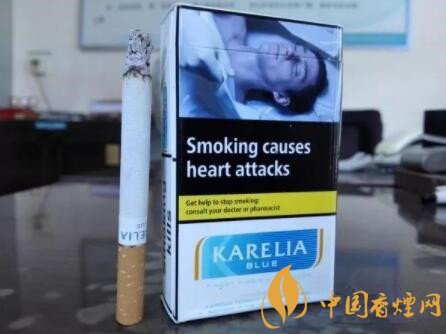 煙的名字,是KARELIA,我稱其為卡瑞利亞。當(dāng)然,網(wǎng)上也有其它的譯法。這是一款產(chǎn)自歐洲希臘的免稅版本香煙,BLUE藍(lán)款。由此看來(lái),至少還有RED紅款的存在。許多混合型品牌香煙,諸如L&M、云絲頓等,都有紅藍(lán)款的樣式。紅款為濃郁的原味,藍(lán)款為清雅的特醇味道。