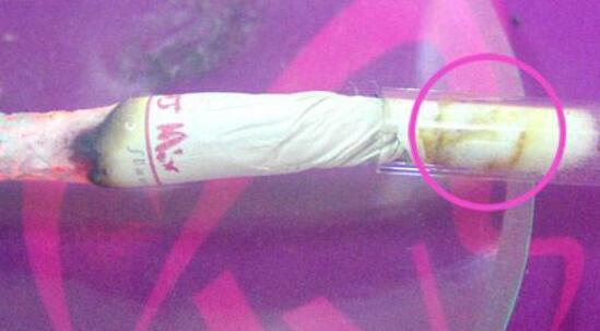 1,首先我們利用吸氣裝置將煙氣的粒相成分(包括焦油、尼古丁、水)收集于棉花團(tuán)上,此時棉花局部就變黃變褐了,那就是收集到的總粒相物(見下圖1);