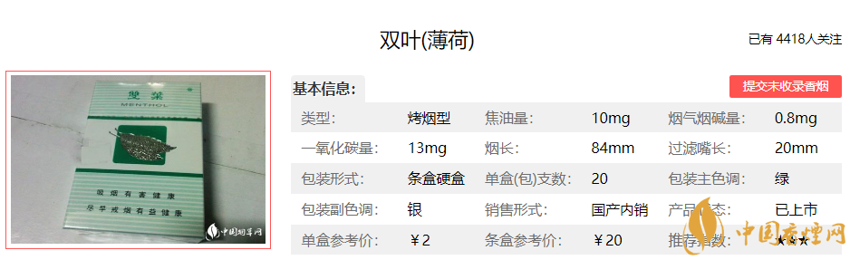 雙葉煙也是小時(shí)候抽過(guò)的比較經(jīng)典的一款煙,最后才知道它是一款薄荷煙,和我們抽過(guò)的其他煙有很大的區(qū)別,抽起來(lái)涼颼颼的。煙香保持和諧,口味清新、自然,通體舒暢。產(chǎn)品獨(dú)特的香味感受以及平易的價(jià)格,讓眾多消費(fèi)者對(duì)其情有獨(dú)鐘。