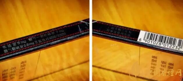 左側(cè):真龍香煙燃情時光顯示了焦油量8MG/煙堿0.8MG/煙氣7MG,細(xì)支里來說屬于中上水平了,并有客服熱線。右側(cè)則是出品方廣西中煙和條形碼。