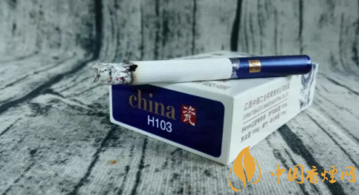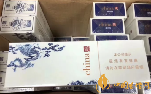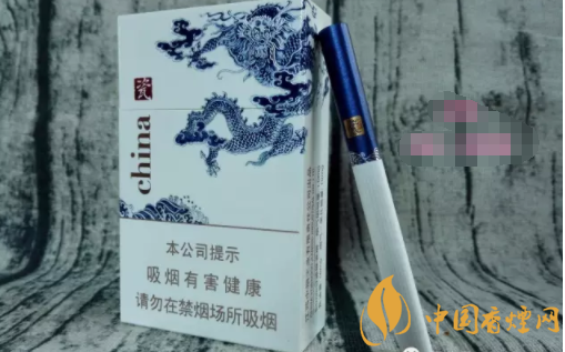 煙盒正面主圖為青花騰龍造型,張牙舞爪,欲入深海而攪起驚濤駭浪。煙盒頂端,印有青花瓷瓶的圖案,同時加以文字簡介。煙盒底端主色調為深藍,與正反兩面的藍色青花龍色調相輔相成。China和瓷的品名,再次印制于此部位。H103,是指產(chǎn)品的隨機編號。