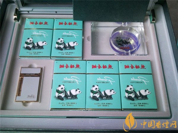 內(nèi)盒裝置很有特色,配有印有品牌LOGO熊貓圖案專用煙灰缸,還有特制的高檔白色融色的打火機,錯位的呈列香煙方式非常新穎時尚。整體設(shè)計簡約,線條流暢,給人感受很舒適。