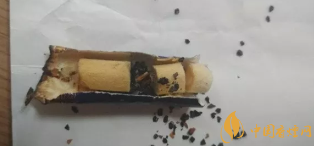 真龍海韻軟盒好抽嗎?煙支為普通煙長度,濾嘴也是正常長度。濾嘴紙一側(cè)印有真龍字樣,對(duì)應(yīng)那邊印有南海龍王字樣。濾嘴紙包裹濾芯非常緊,剪刀插不進(jìn)去,上圖是樓主用小刀劃開的第三支煙蒂。整支濾芯分四個(gè)部位,從煙葉接觸處點(diǎn)來算是:長海綿濾芯→活性炭→短海綿濾芯→硬海綿濾芯圈。