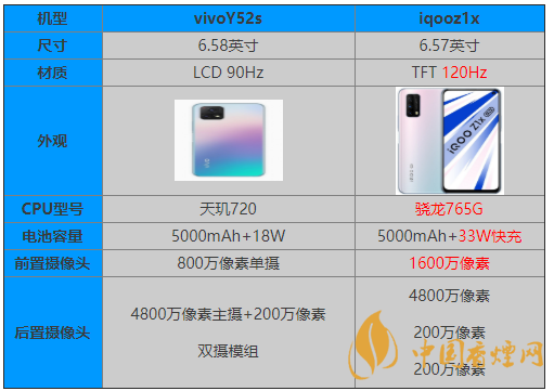 vivoY52s和iqooz1哪款手機(jī)更好?vivoY52s一款性能均衡的新手機(jī),那么這款新手機(jī)和iqooz1x相比較有著什么樣子的差別呢?又是哪一款手機(jī)有著更加高的性能呢?現(xiàn)在就有香煙網(wǎng)小編來(lái)為大家介紹一下vivoY52s和iqooz1參數(shù)對(duì)比,感興趣的朋友一起來(lái)看看吧。