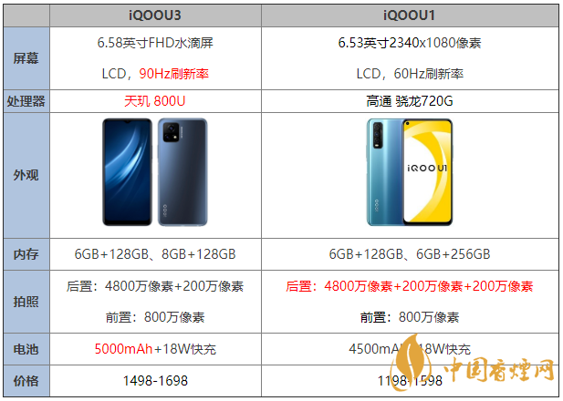 QOOU3于今日正式上架,那么iQOOU3和iQOOU1對比,有哪些參數(shù)配置上的區(qū)別,iQOOU3和iQOOU1哪個好,哪款性價比會更高呢,接下來香煙網小編將對iQOOU3和iQOOU1的參數(shù)配置對比進行介紹,感興趣的朋友一起來看看吧!