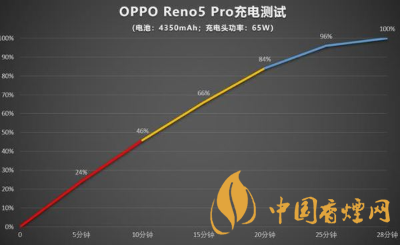 除了超長續(xù)航之外,OPPO Reno5 Pro還加入了65W超級閃充技術(shù),進(jìn)一步提升快充體驗(yàn)。從實(shí)際測試結(jié)果來看,如果從零開始進(jìn)行充電,OPPO Reno5 Pro只要5分鐘就能充電24%,10分鐘就能充電46%,充到100%只需要28分鐘,充電速度非??臁<幢闶鞘謾C(jī)沒電了,OPPO Reno5 Pro也能快速回血,一會功夫就能完成充電工作,日常使用更方便。