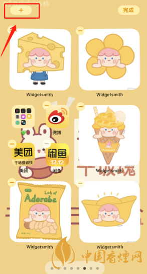 2、長按桌面空白處,再點(diǎn)擊左上角“+”號;
