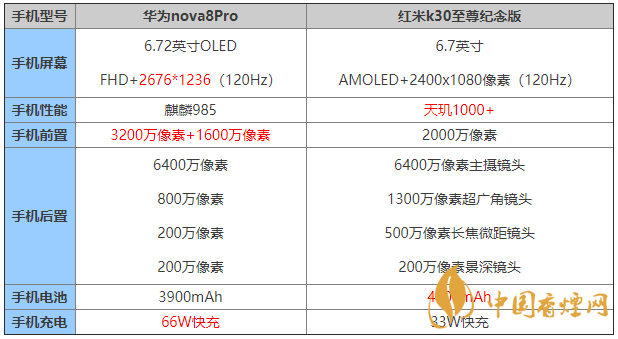 華為nova8pro可是一款即將上市的新手機(jī),很多小伙伴們都是想要知道這款手機(jī)和之前深受用戶歡迎的紅米k30至尊紀(jì)念版哪個(gè)好,哪個(gè)更值得入手?下面香煙網(wǎng)小編將對(duì)華為nova8pro和紅米k30至尊紀(jì)念版參數(shù)對(duì)比進(jìn)行介紹,感興趣的朋友一起來(lái)看看吧!