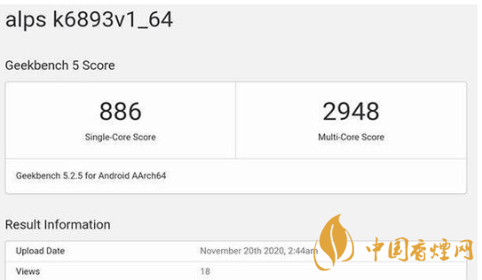 天璣1200在Geekbench5中,單核成績886,多核成績2948分。