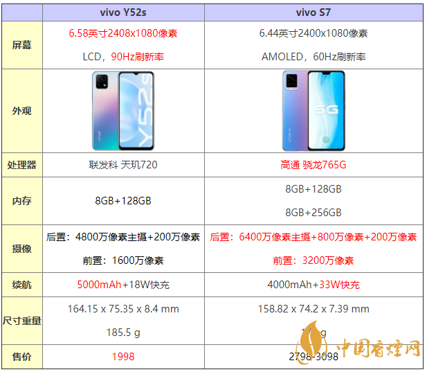 vivoy52s和vivos7手機(jī)哪個(gè)更好?vivoy52s和vivos7對(duì)比,有哪些區(qū)別和配置差距,哪款手機(jī)更值得入手?接下來(lái)香煙網(wǎng)小編就為大家?guī)?lái)了vivoy52s和s7全面參數(shù)配置對(duì)比,一起看看哪款更值得入手性價(jià)比更高吧!