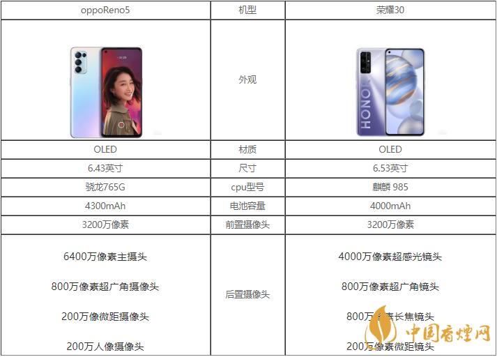 opporeno5和榮耀30哪款手機(jī)更好?opporeno5手機(jī)是oppo最近發(fā)布的一款5G手機(jī),榮耀30S也是一部性價比很高的手機(jī)。這兩款手機(jī)除了性能上還有什么差距呢?下面香煙網(wǎng)小編將對opporeno5和榮耀30參數(shù)對比進(jìn)行介紹,一起來看看吧!