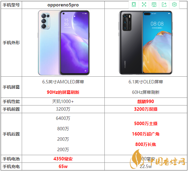 opporeno5pro與華為p40哪款手機更值得入手?這兩款手機在參數(shù)方面有什么區(qū)別?哪款手機的性價比更高?下面香煙網(wǎng)小編為大家?guī)韔pporeno5pro與華為p40參數(shù)對比,感興趣的朋友快來看看吧。