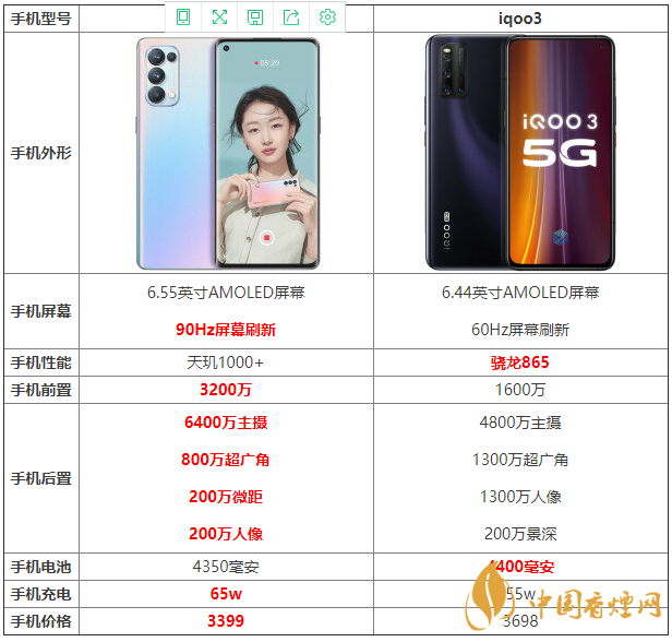 這兩款手機的側(cè)重點不同,對手機的拍照、外形有需求的可以選擇opporeno5pro,對手機游戲性能、散熱性能、續(xù)航能力有需求的可以選擇iqoo3。