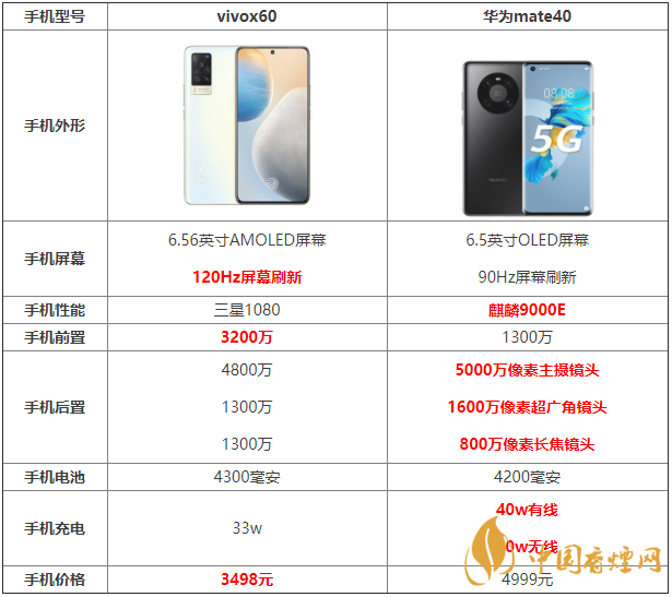 許多小伙伴對vivox60和華為mate40遲遲不能抉擇,不知道該入手哪款手機(jī),那么這兩款手機(jī)之間的區(qū)別有哪些?具體的參數(shù)區(qū)別是什么?下面香煙網(wǎng)小編將對vivox60和華為mate40參數(shù)對比進(jìn)行介紹,感興趣的朋友一起來看看吧!