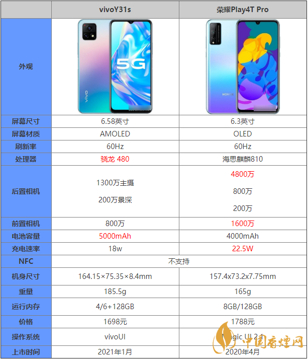 vivoY31s和榮耀Play4TPro都是定價(jià)中端手機(jī),那么vivoY31s和榮耀Play4TPro有什么區(qū)別?哪款手機(jī)更值得入手?下面香煙網(wǎng)小編將對(duì)vivoY31s和榮耀Play4TPro參數(shù)對(duì)比進(jìn)行介紹,感興趣的朋友一起來(lái)看看吧!